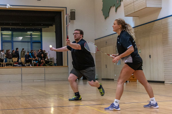 Der erste Spieltag in der Rückrunde gegen den BV Esslingen wurde zu Hause in der Kulturhalle in Wallhausen ausgetragen. Sichtlich vom Publikum angefeuert wurden die beiden Herrendoppel gewonnen. Lukas und Jakob Stoll ließen Ihren Gegner in beiden Sätzen keine Zeit sich zu wehren und schlossen beide Sätze mit 21:13 ab. Jonas Hahn und Peter Bredl, der kurzfristig für Peter Hillgärtner eingesprungen war, spielten locker auf und holten sich beide Sätze mit einem guten Punktevorsprung. Im Damendoppel zeigten Christine Neufeld und Maruthy Thangarasa in einem spannenden Dreisatzspiel, dass man die Wallhausener Damen nicht unterschätzen sollte und holten den dritten Satz zum Sieg mit einem guten Polster zum 21:18.